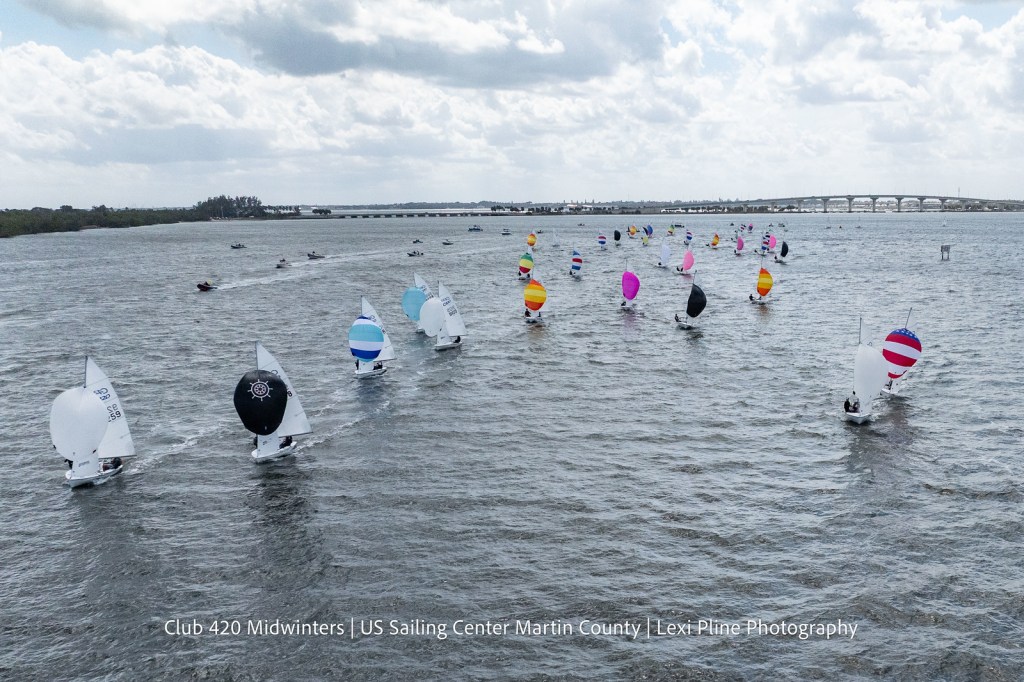 Dec. 2019. Championship Fleet on starting line at Jensen Beach, Fl.