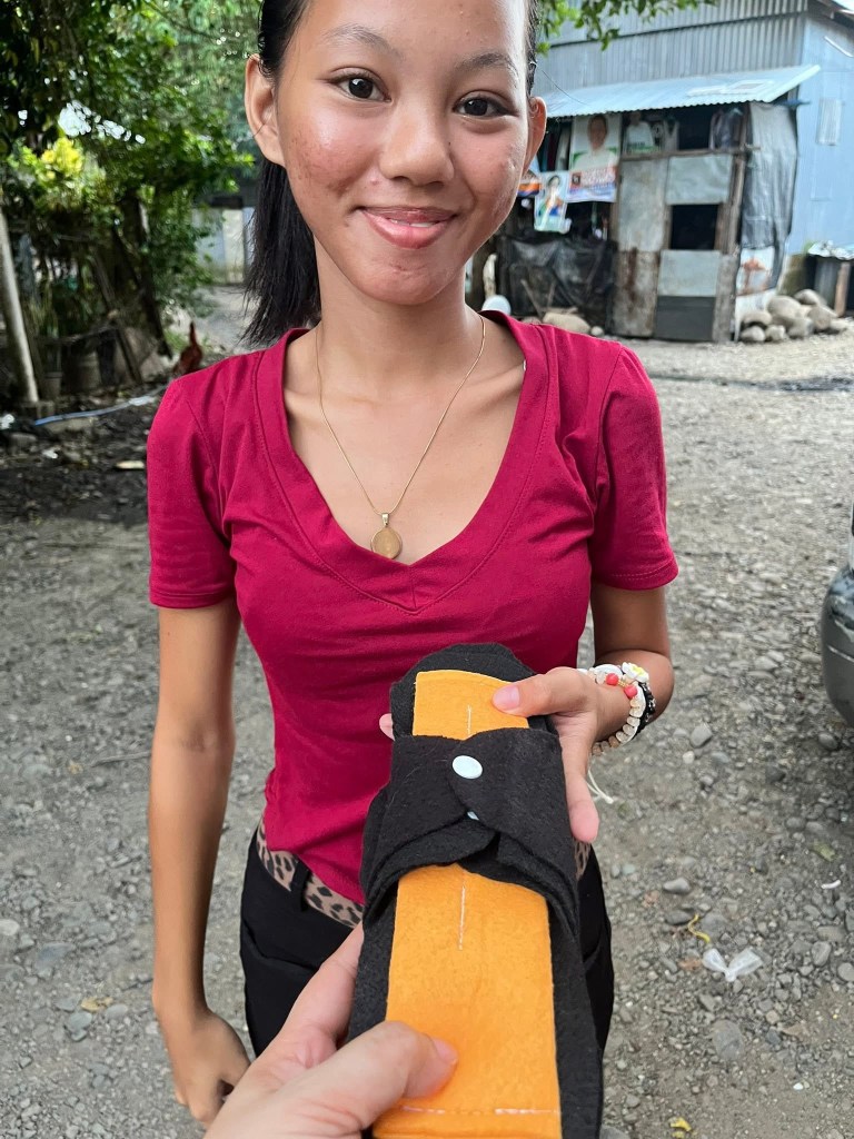 Handmade Pads- takes about 10-15 minutes to make each pad ( sketching, cutting, and sewing it etc..)I then I ship a box to a village in the Philippines (for now), girls/women each get 2 pads for free and for them to start using these pads instead of the single use ones. These pads are designed to last for so many years with proper washing and use.